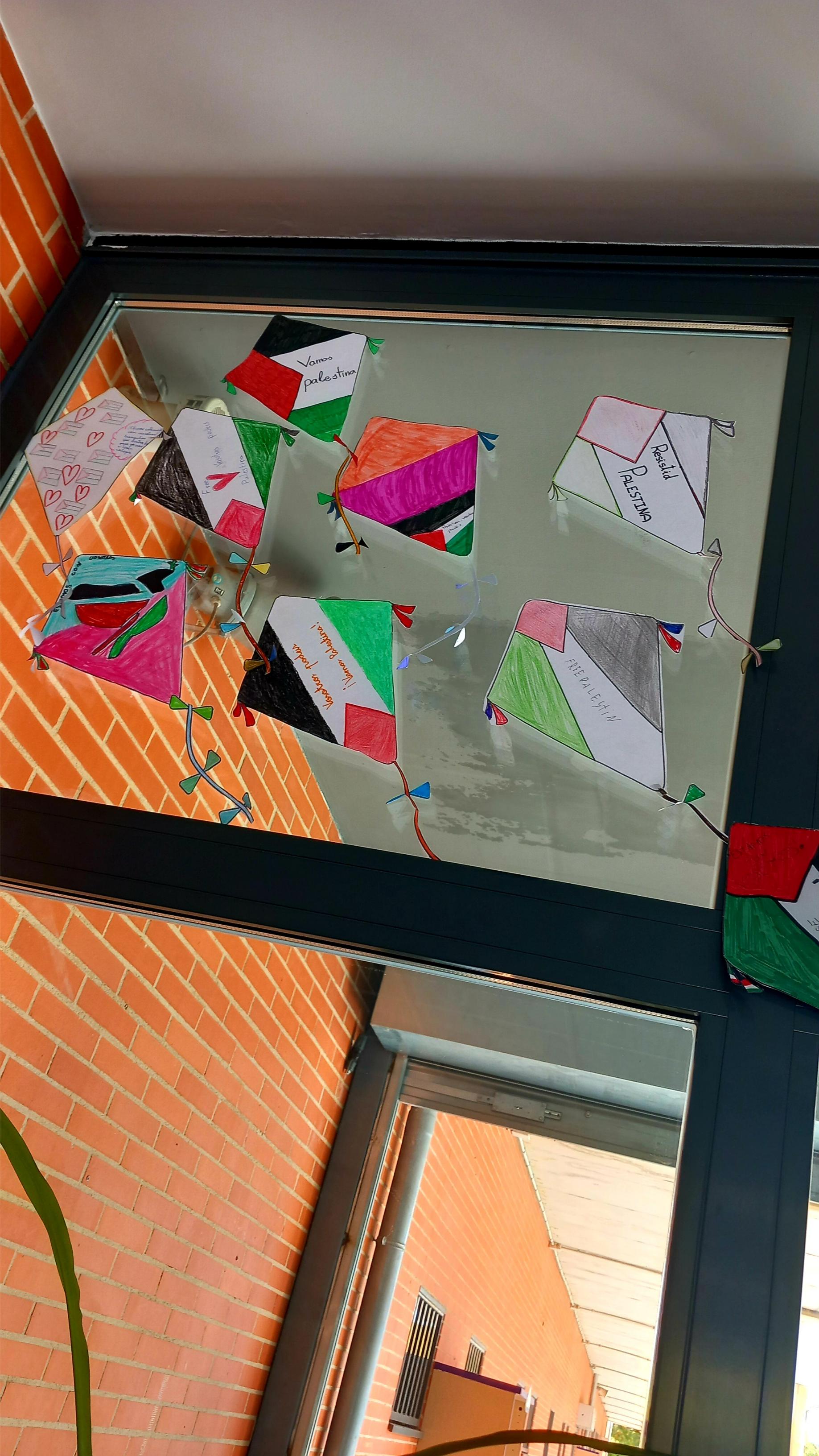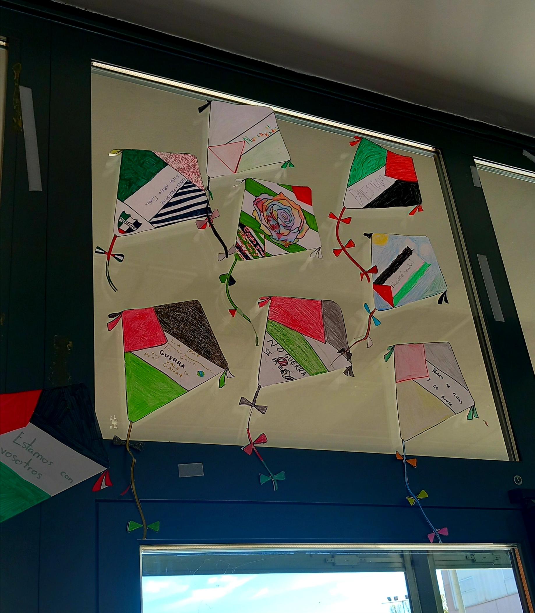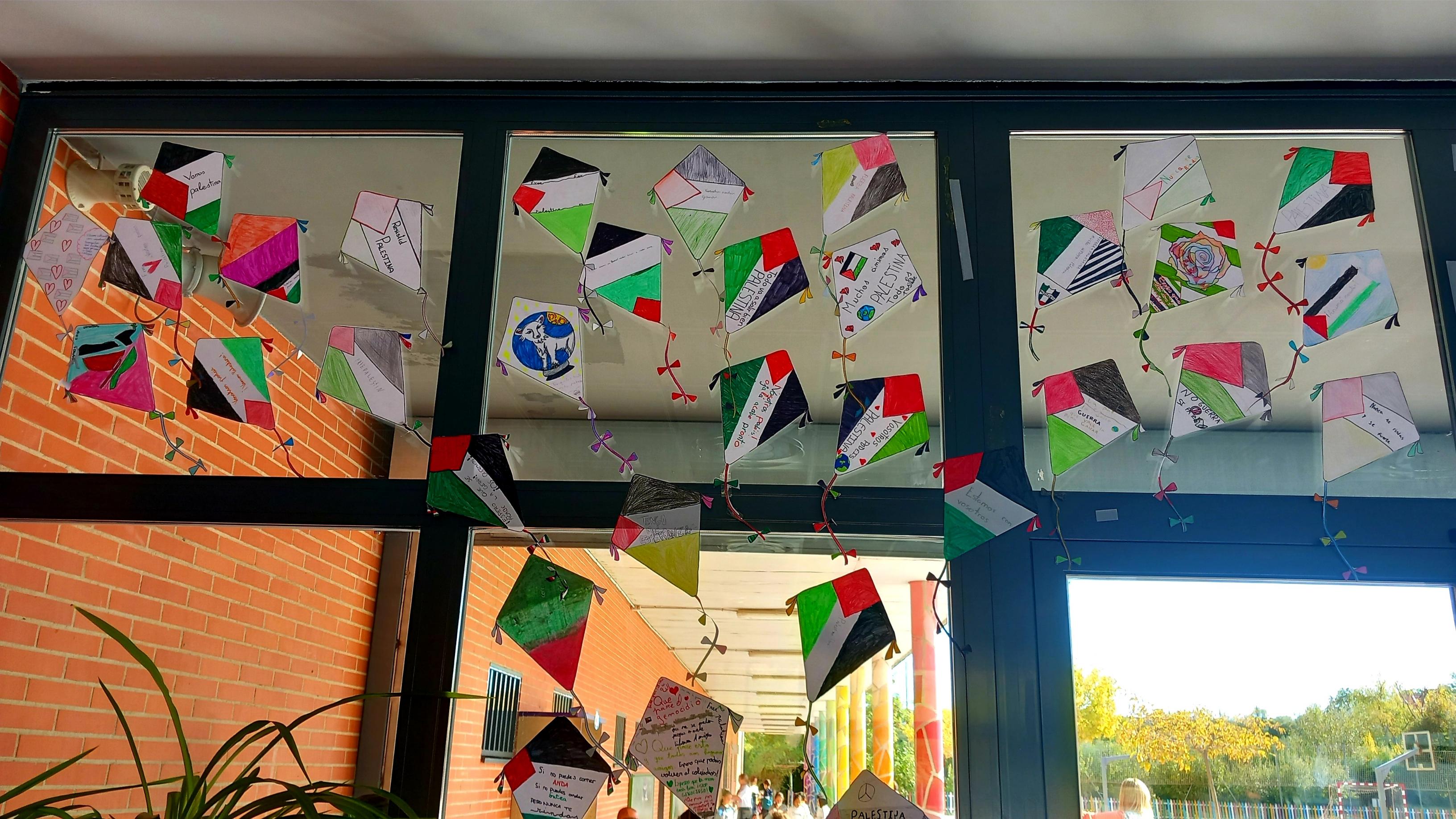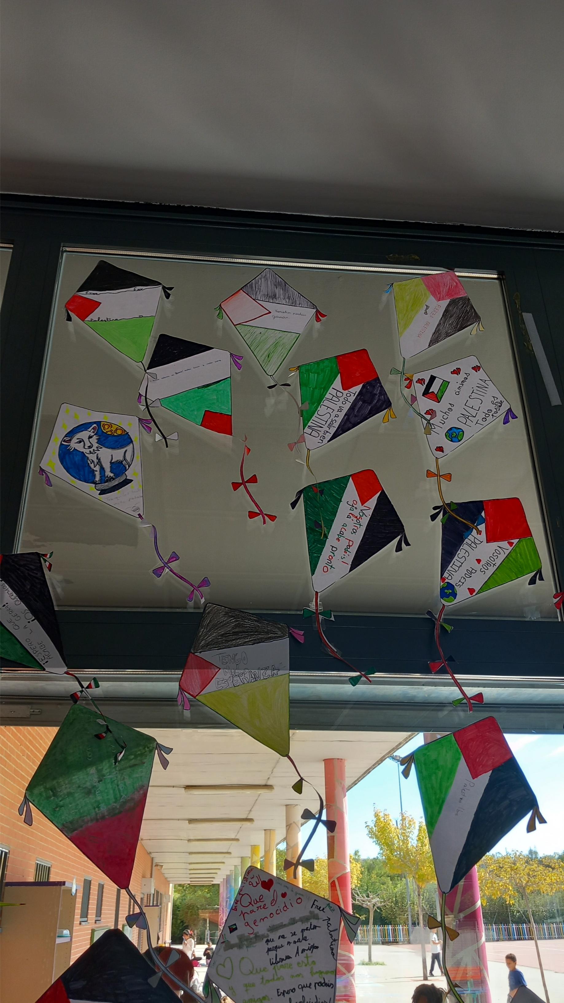 Cada clase pintó una cometa y escribió en ella un mensaje de apoyo y cariño dirigido a los niños y niñas de Palestina, que están viviendo momentos muy difíciles a causa de la guerra.