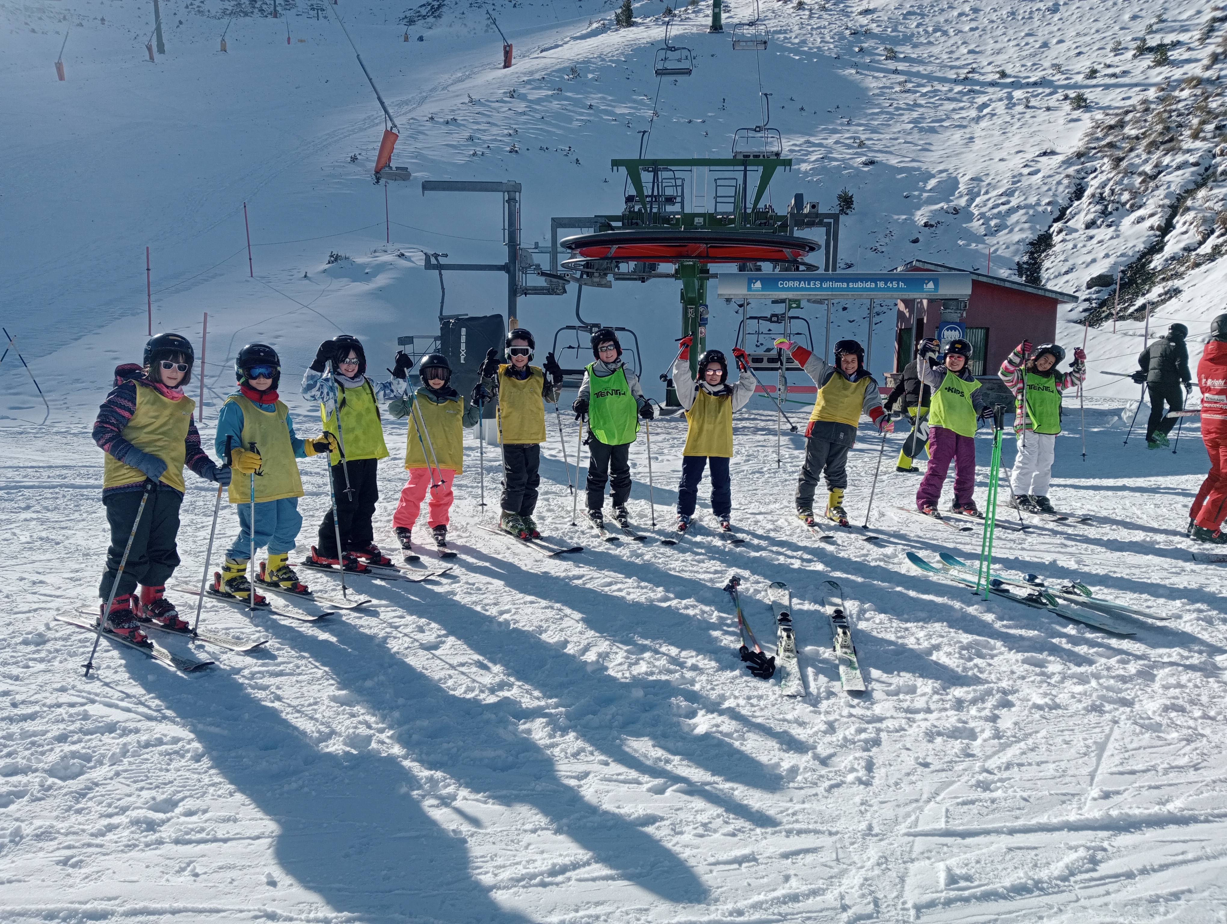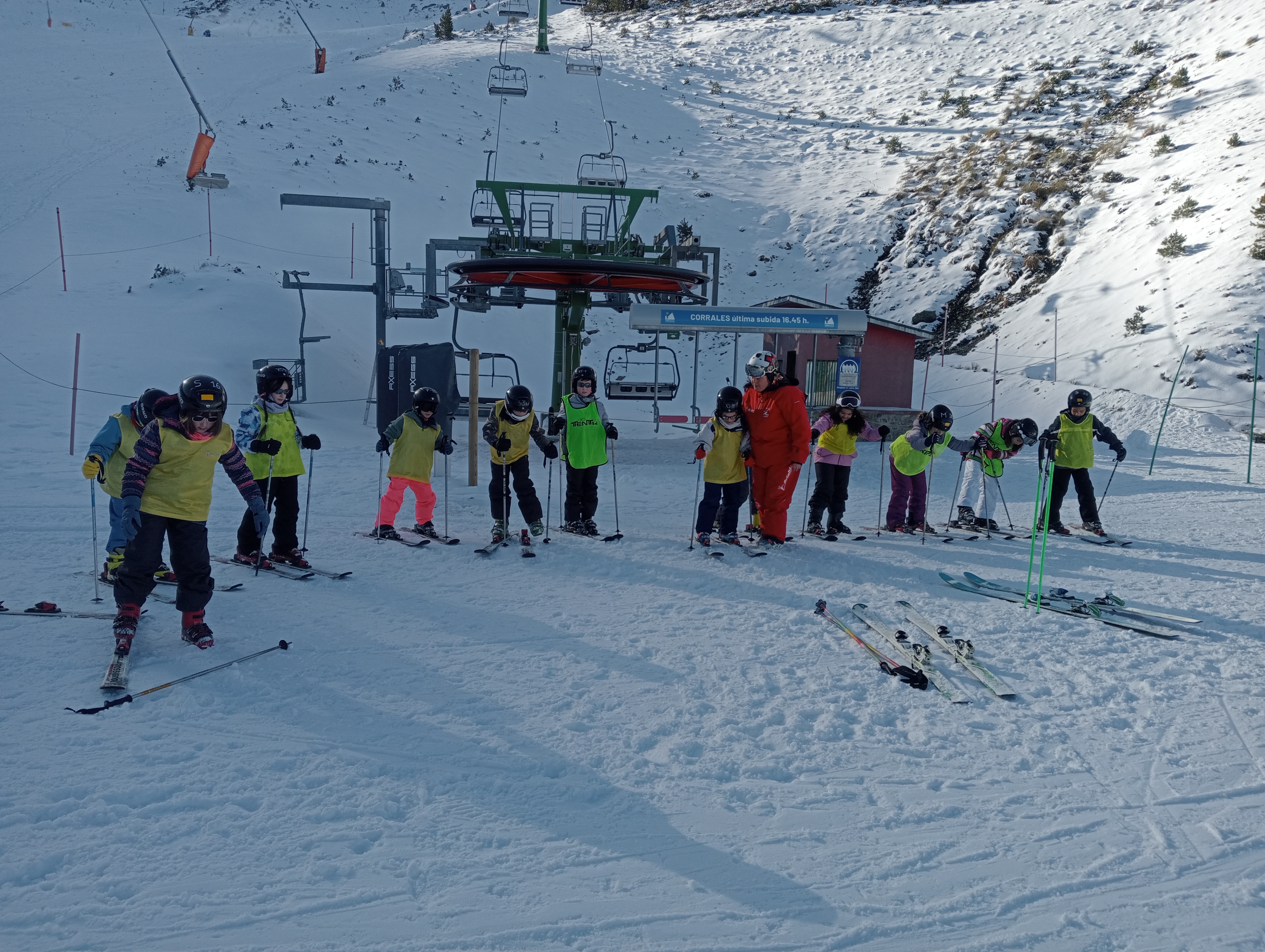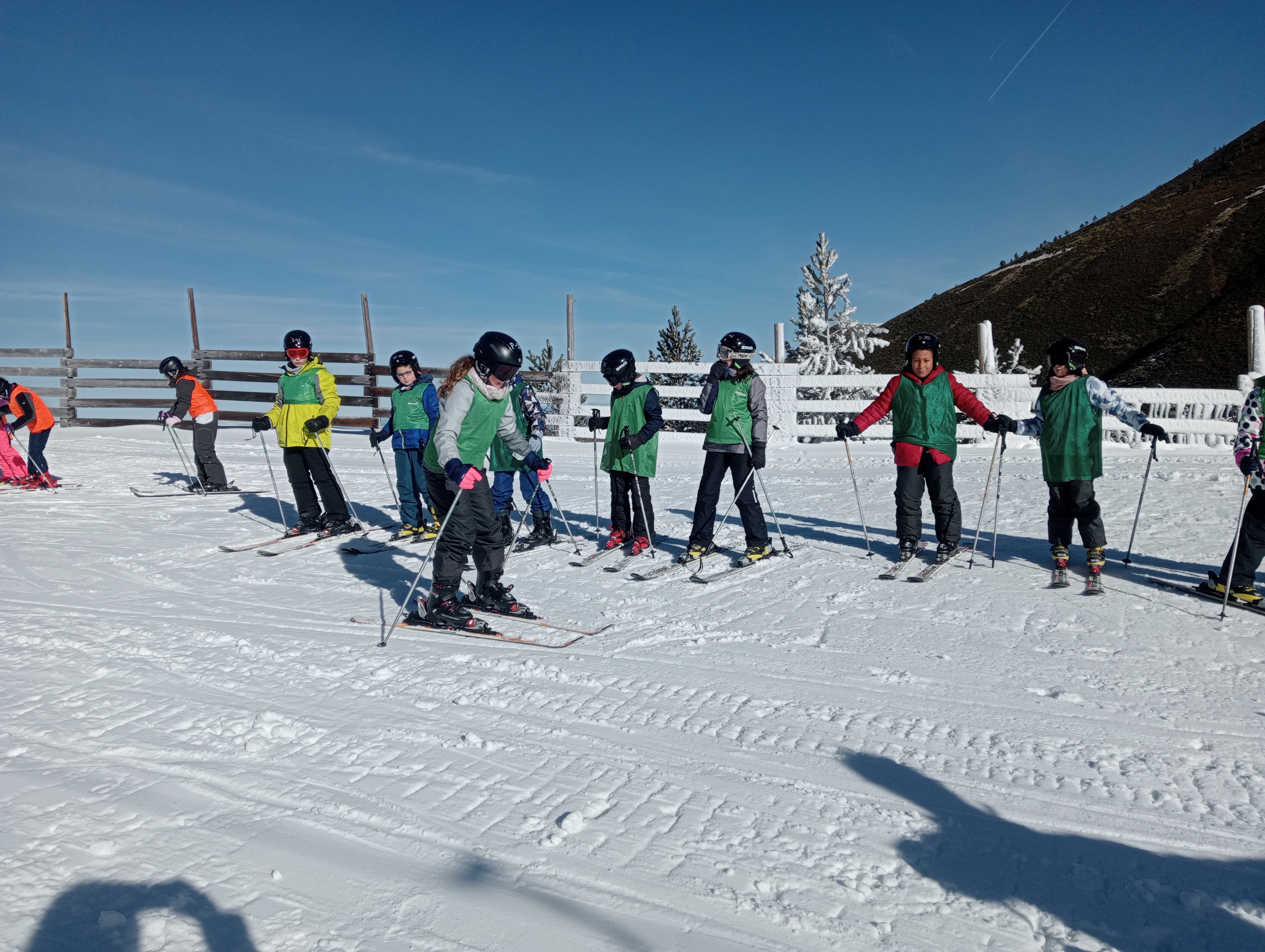 Durante la primera parte de la mañana estuvimos con los monitores, aprendiendo distintas técnicas para poder esquiar. Después, tras recuperar fuerzas con la comida, tuvimos un buen rato libre para practicar nosotros solos.