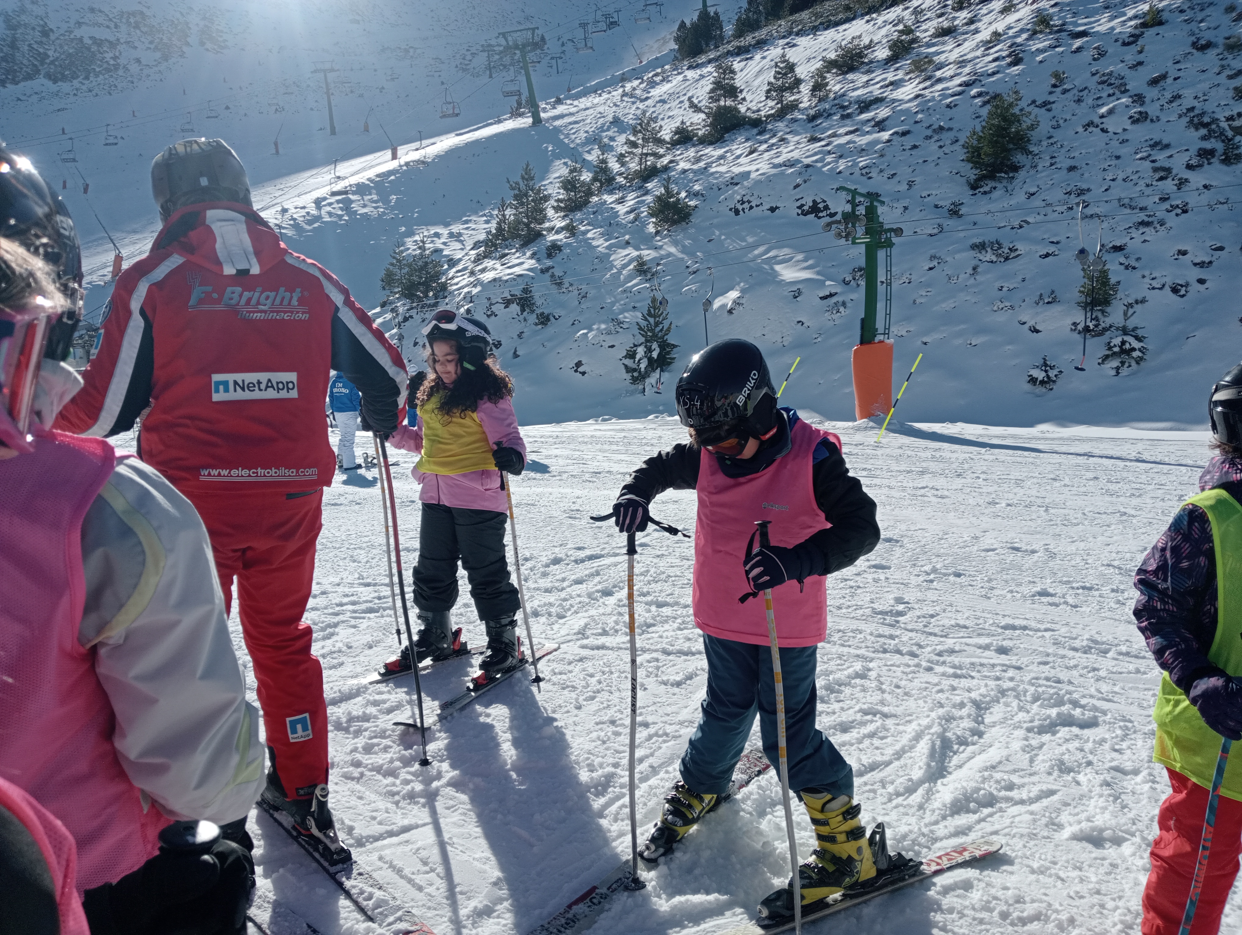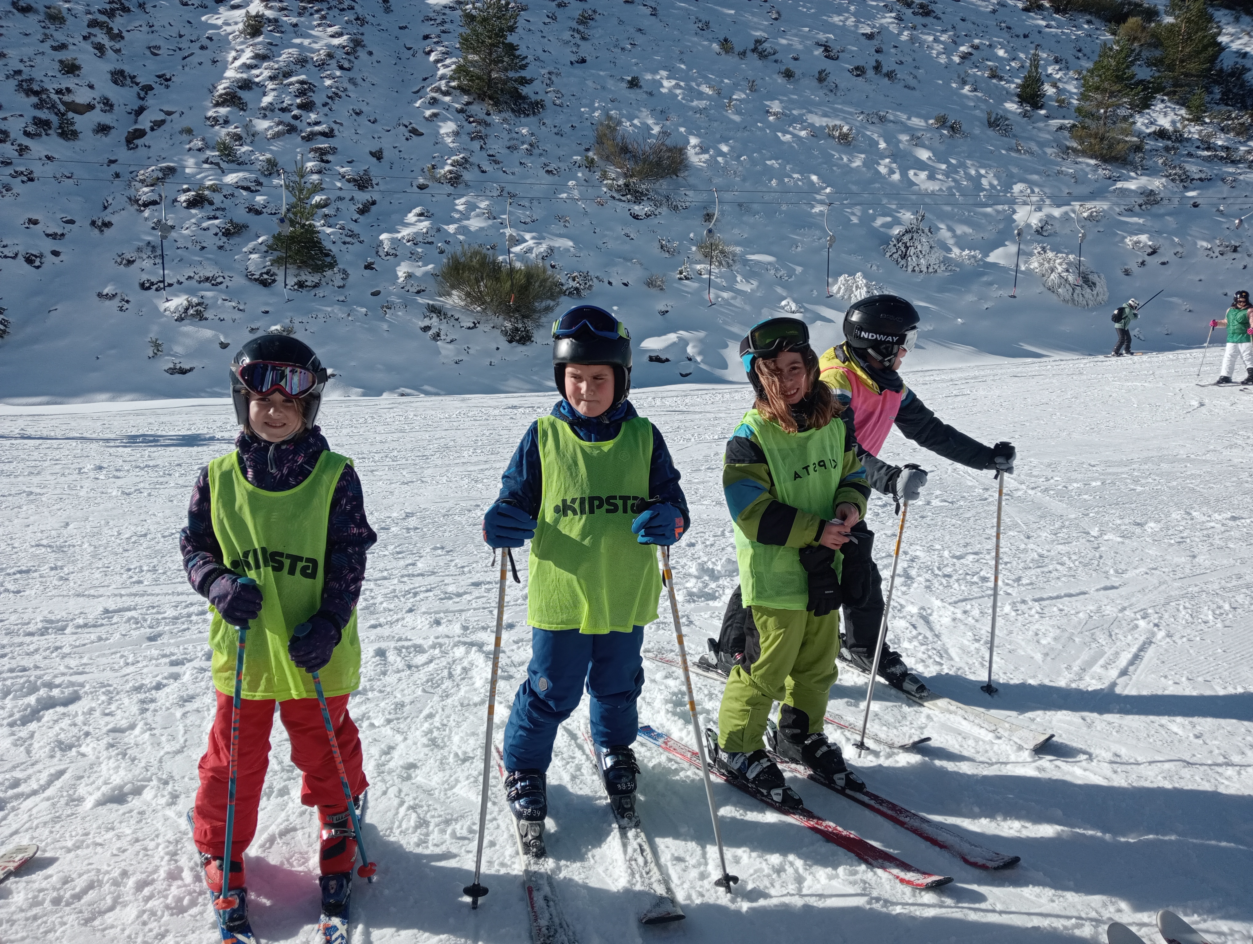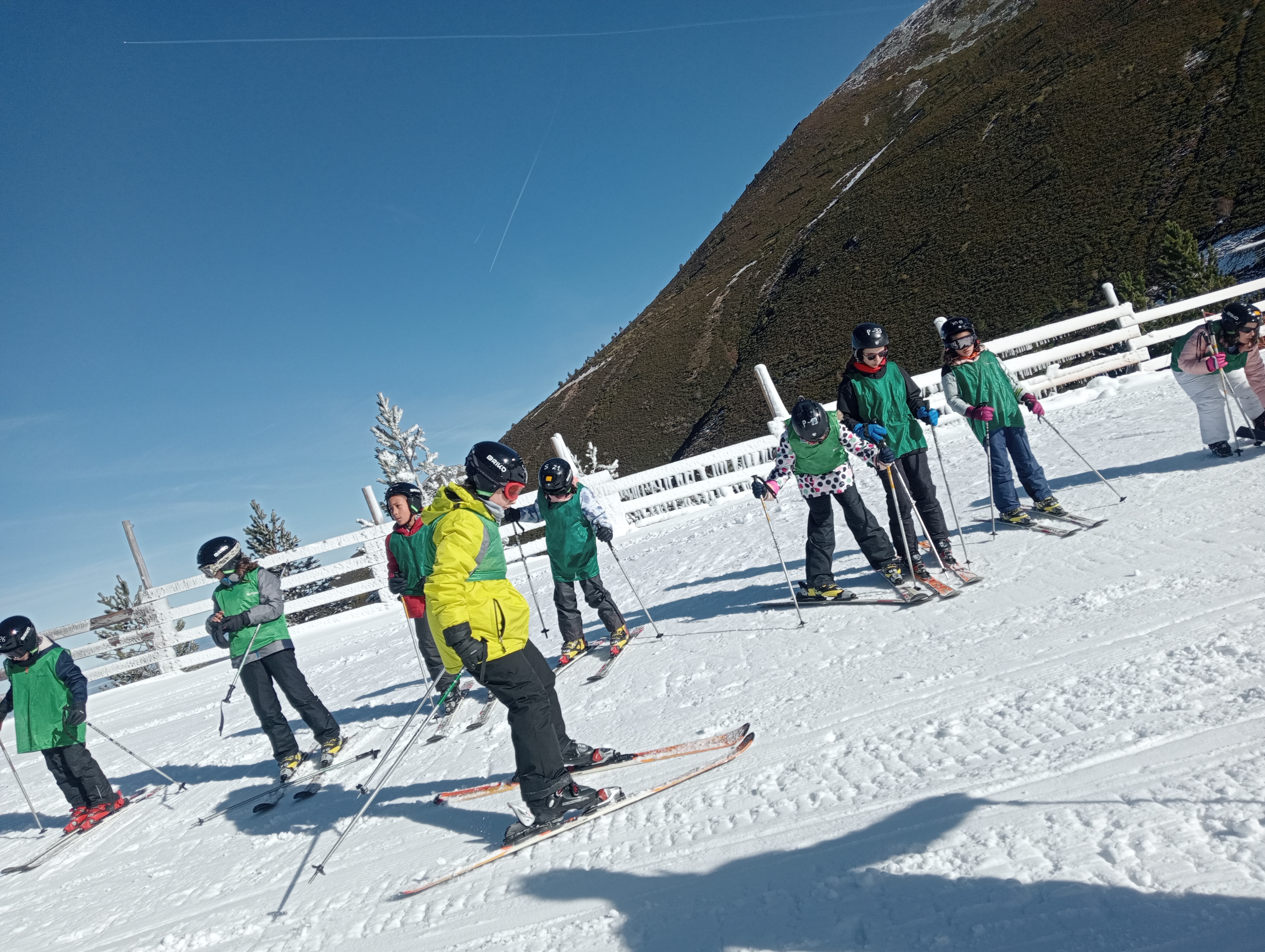 Durante la primera parte de la mañana estuvimos con los monitores, aprendiendo distintas técnicas para poder esquiar. Después, tras recuperar fuerzas con la comida, tuvimos un buen rato libre para practicar nosotros solos.